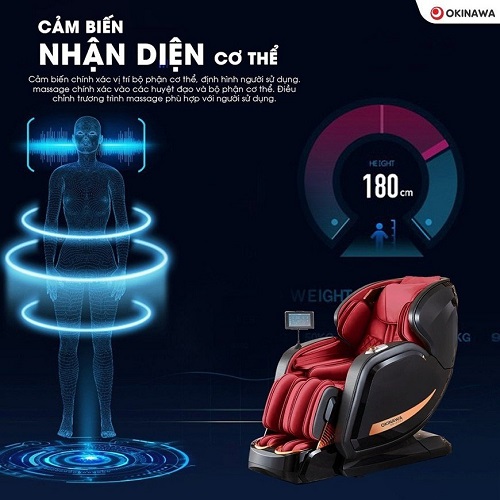 Công nghệ trí tuệ nhân tạo AI điều chỉnh thời gian thực của đường massage, chính xác tới từng milimet tới từng vùng của cơ thể. Chức năng Body Scan với 9 cảm biến vị trí, 13 cảm biến tốc độ tự động dò tìm huyệt vị, huyệt đạo giúp massage hiệu quả.