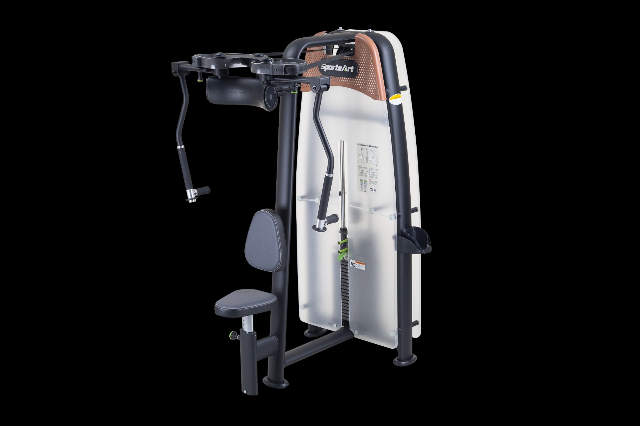 This dual-function machine reproduces a pectoral and rear deltoid fly workouts.